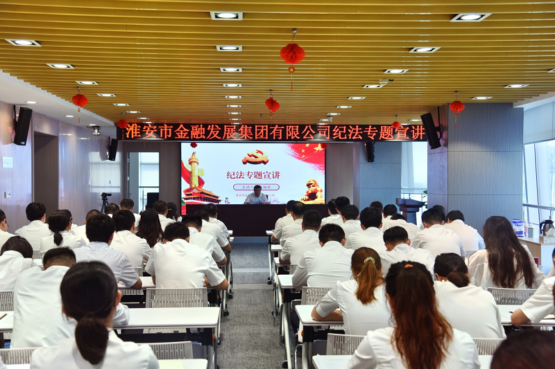 為進一步落實全面從嚴治黨主體責任,推動警示教育走深走實,9月6日,市金融發(fā)展集團組織開展紀法專題宣講,集團黨委書記、董事長紀福連作“砥礪忠誠擔當 奮力跨越趕超 以過硬紀律作風保障高質(zhì)量發(fā)展”專題黨課。領(lǐng)導班子成員及全體員工參加活動。